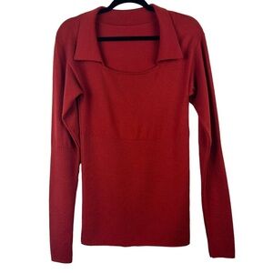 JACQUEMUS Brick Red Rust Orange Ribbed Collared Fitted Sweater 100% Wool US M 6