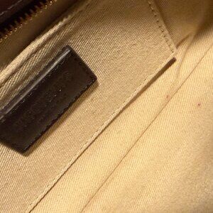 Used but good condition. Zipper hardware shows signs of wear, slight pill on edges of the strap, a few tiny pink spots in the interior - all shown in photos.