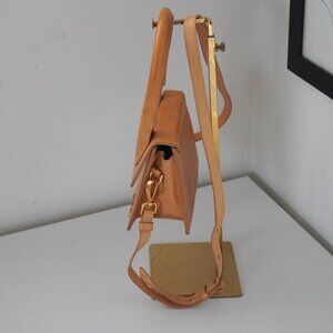 Bought in 2021, has marks of water shown in the pictures that probably can be removed with special product. The inside is perfect. Adjustable strap, dust bag.