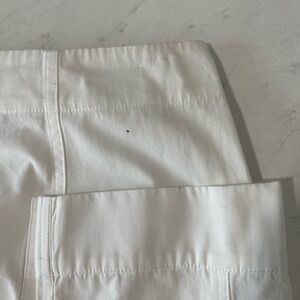 - Gently used condition, some spots on front and back, some discoloration on back side hem, some safety pin holes along waistline