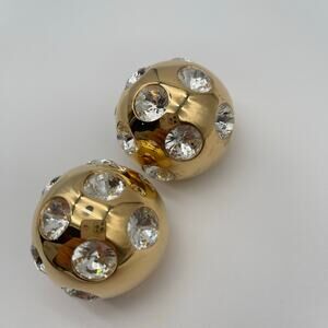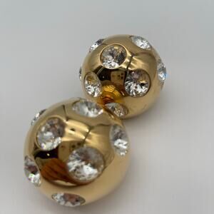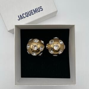 JACQUEMUS | Les Boucles Salon Rhinestone Studded Ball Earrings in Gold & Crystal