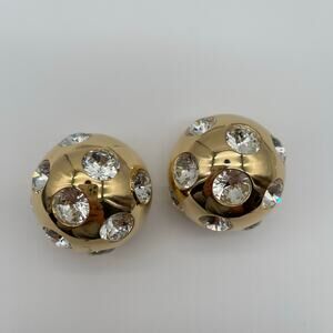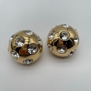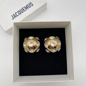 JACQUEMUS | Les Boucles Salon Rhinestone Studded Ball Earrings in Gold & Crystal