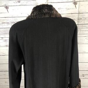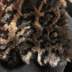 JAD Vintage black wool coat faux fur Cheetah print collar cuffs size medium
