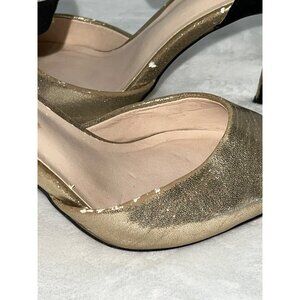 JADA BRAVE “MACIEN” BLACK SUEDE BACK WITH GOLD FRONT PUMP/SZ 8