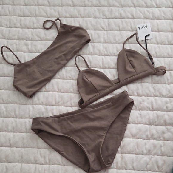 gently used botton and scoop neck top, brand new triangle top - NUDE