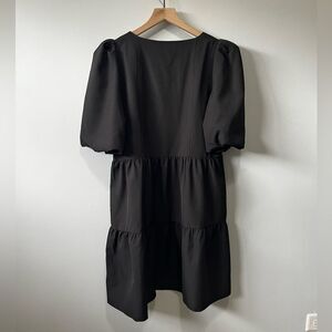 JADE Black Bubble Sleeve Tiered Dress L NWOT