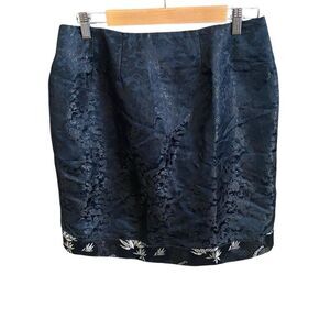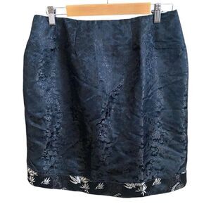 Fancy black/silver print mini skirt takes center stage. Perfect for parties and holiday get togethers. Back zipper closure. Like new condition.
