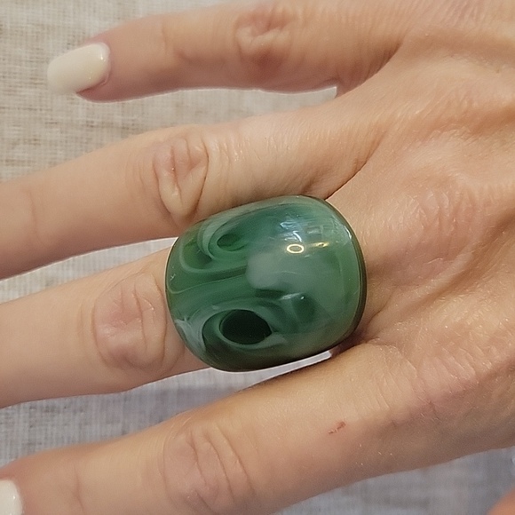 JADE GREEN SWIRL CONTOURED STATEMENT RING