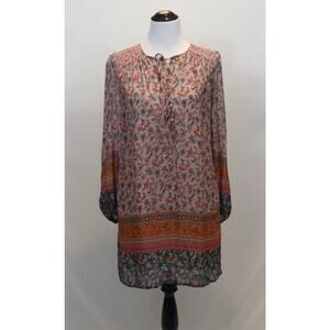 Women's tunic dress by JADE by JOHNNY WAS. Size XS. 100% rayon. Maha mini dress. Floral print, tunic length, ties at neck. NWT new with tags.