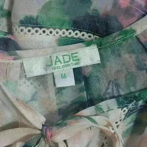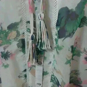 Excellent condition. Semi Sheer and light weight. Will need a chemise worn underneath. Very loose and flowy size M. Pit to pit measures 24". Shoulder to hem 24". A size large can wear and still look fabulous. 100% polyester.