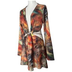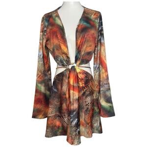 JADED LONDON Cut Out Satin A line Dress In Dark Soleil Print Size US 8