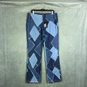 JADED London Jeans Womens 32 Blue Diamond Patchwork Extreme Low Rise Y2K Style