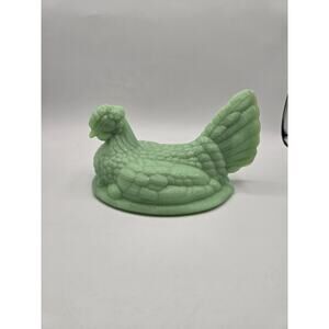 JADEITE Depression Style Glass Chicken Hen On Nest Split Tail TOP ONLY