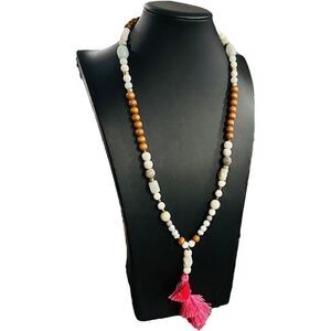 JADEITE Jade Quartz and Nephrite Jade Gemstone Beaded Long Tassel Necklace