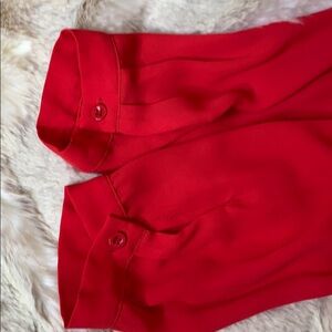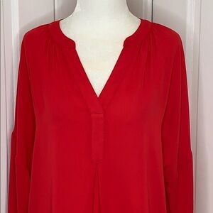 A Cardinal Red V-Neck, Long Sleeve, Blouse, Cuffs Button