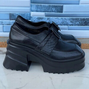JADYROSE | BLACK MATTE LEATHER CHUNKY HEEL LOAFER SIZE 38/8