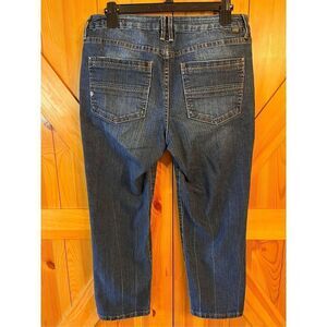JAG Jeans Slim Fit Cropped Women's Size 12 Dark Wash Stretchy Distressed measurements 30” waist 24.5” inseam 9.5” rise (2999)