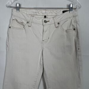 JAG women's relaxed boyfriend jeans in off white color. Mid-rise. Metal button and zipper closure. Belt loops. 5-pocket. In good used condition. No stains, tears or holes.
