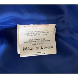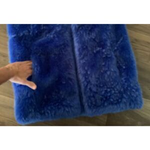 The JAKKE Anthropologie 100% Fake Fur GRAPHIC Fuzzy BLUE Coat Jacket in size 2 (but fits up to a size 4-6 )is a stylish and cozy addition to any woman's wardrobe. Made from faux fur with an open front and pockets, this casual jacket features a graphic design on the back “100% FAKE” in a solid COBALT blue color. The oversized fit and long sleeves make it perfect for the winter, fall, and spring seasons. Lined with acrylic material and insulated with polyester, this short-length coat is a standout piece with a relaxed fit and unique character. Perfect for those who appreciate nature, art, and a bit of a bohemian or hipster vibe.AMAZING CONDITION!