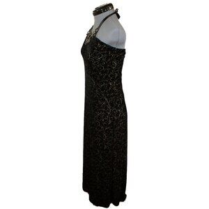 JALOUX Anthropologie Small Black Maxi Dress Burnout Velvet Halter Party Cocktail