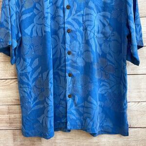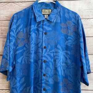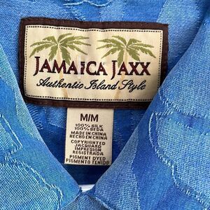 EXCELLENT CONDITION JAMAICA JAXX 100% SILK HAWAIIAN SHIRT IN BLUE