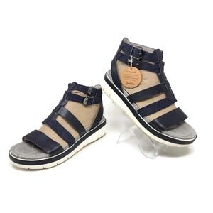 JAMBU Navy Blue LEATHER w/Denim Blue GLADIATOR SANDALS WO'S SZ 6.5 M New