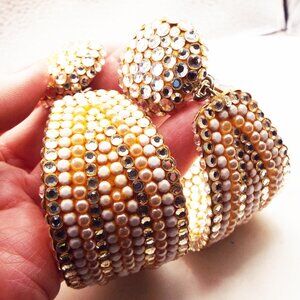 JAMES ARPAD RUNWAY READY GOLD & SILVER BEADS MASSIVE DEMI HOOP EARRINGS 40A