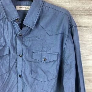 JAMES CAMPBELL Men Blue Cotton Long Sleeve Button Front Shirt