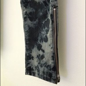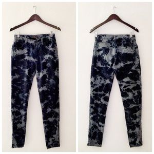 ✨Dry Aged Demin Women's Jeans by JAMES JEANS Ink Blot Dyed pattern. Twiggy style, Slim, Skinny Fit. 30" Inseam. Size 26 Regular. Zipper embellishment at ankles. Soft comfy fitted fabric and wear. Cotton Blend - 69% Cotton, 29% Polyester, 2% Elastin. Pre-owned Gentle Use, like new! Fun and Funky, dress up or dress down!✨