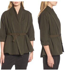 Cut from soft, textured stretch cotton, this oversized kimono jacket gets beautiful shape from a D-ring grosgrain belt.
