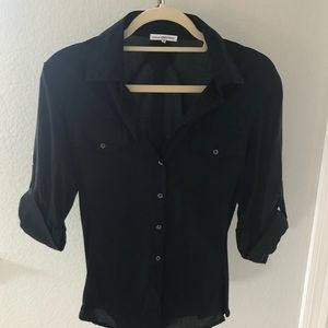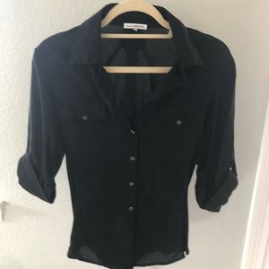 Update your wardrobe with this classic JAMES PERSE Black Rollup Sleeve Buttondown Blouse. Button up this button down!