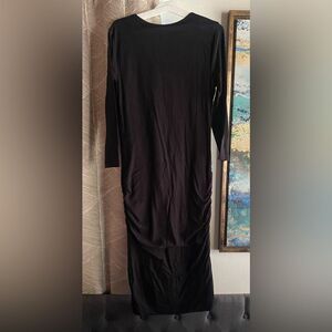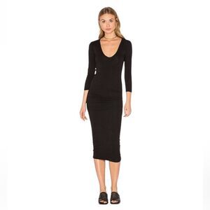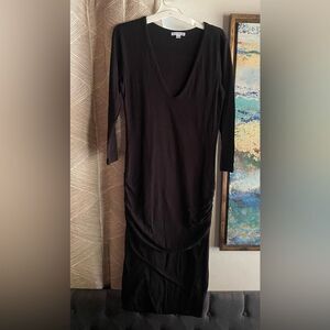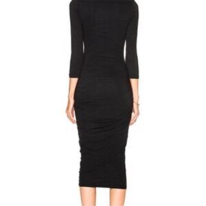 JAMES PERSE Ruched T-Shirt Dress Black 3/4 Sleeve Bodycon Skinny Sz 4 L NEW