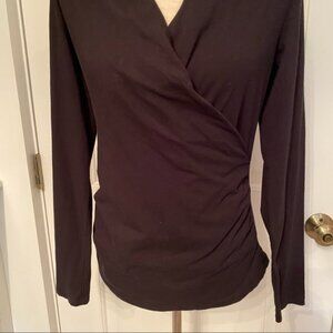 JAMES PERSE TOP WRAP LOOK BLACK STRETCH V-NECK LONG SLEEVE Size 2 M