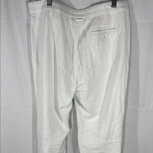 James Perse pants, women’s drawstring pants, white casual pants, lightweight lounge pants, minimalist style, tapered leg pants, designer basics, elevated casual wear, athleisure pants, relaxed fit trousers, California style pants, everyday white pants, medium size pants, James Perse Los Angeles, women’s size 2 pants.