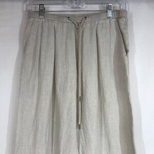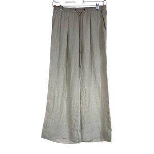 JAMES PERSE - WOMEN'S 0 - GRAY BEIGE WIDE LEG 100% LINEN PULL-ON PANT