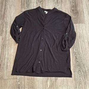JAMES PERSE Black Jersey Knit Open V Neck Button Down 3/4 SleeveTop M (2)