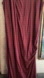 Wine-red dress with ruching on one side and a slight ruffle on the other side, sloping off the shoulder.