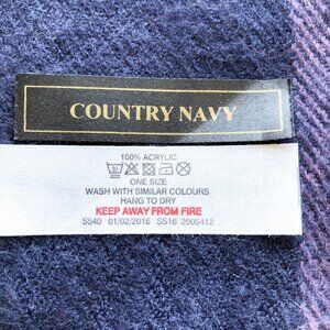 JAMES PRINGLE WEAVERS Acrylic Navy Plaid Fringe Shawl Poncho Scarf