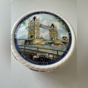 JAMES SADLER ENGLAND LIDDED PORCELAIN TRINKET BOX LONDON'S TOWER BRIDGE