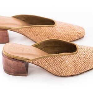 JAMES | SMITH Cafe Society woven rattan wooden block heel mule