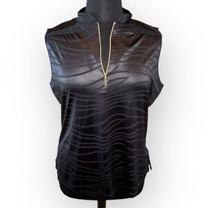 JAMIE SADOCK Black Zebra Print Sleeveless Quarter Zip Mock Top - XXL