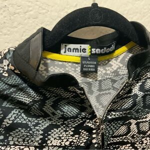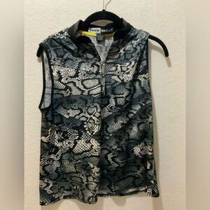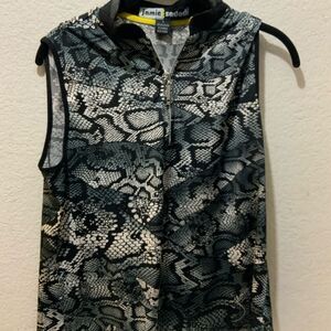 JAMIE SADOCK SLEEVELSS 1/2 ZIP TANK TOP BLACK ANIMAL PRINT Size L