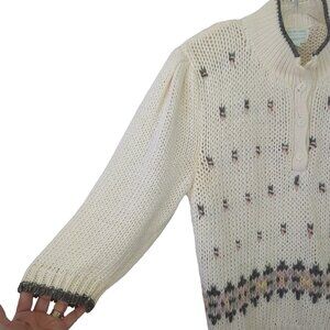 This vintage hand-knitted Women's sweater by Jamie Scott exudes a charming vintage aesthetic. With its intricate patterns and delicate craftsmanship, it provides a cozy and fashionable addition to any wardrobe.