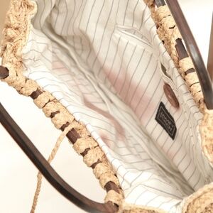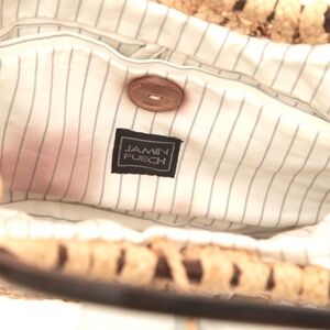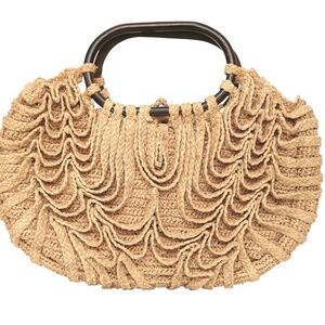 JAMIN PUECH Raffia Bag Sachel Tan Beige Brown Top Handle Beads Tie