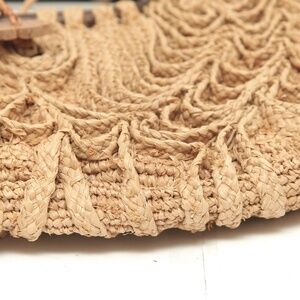 - Natural tan/beige raffia exterior.