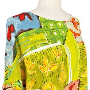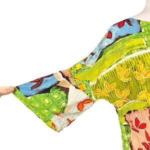 JAMS WORLD Belle Bell-Sleeve Top in Medley Mix Abstract Patchwork Print Size M