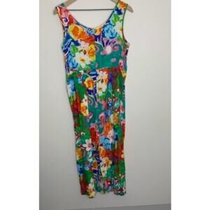 JAMS WORLD Janice Hawaiian Floral Print Sleeveless empire Womens Dress Small