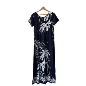 JAMS WORLD Long Dress Black Hawaiian Bay Breeze Palm Trees Short Sleeve Women’s Size Small
