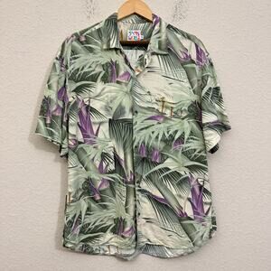 JAMS WORLD Shirt Sage Green Palm Leaves Button Up Hawaiian Tropical Beach