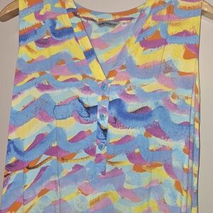 The JAMS WORLD Women's Small Gelato Dress is a boho vintage-inspired piece perfect for a cruise vacation. This sleeveless knee-length sundress features a colorful multicolor design, embodying a bohemian theme that is both relaxed and stylish. Made by Jams World, known for their unique and playful designs, this dress is sure to make a statement whether you're lounging by the pool or exploring new destinations.